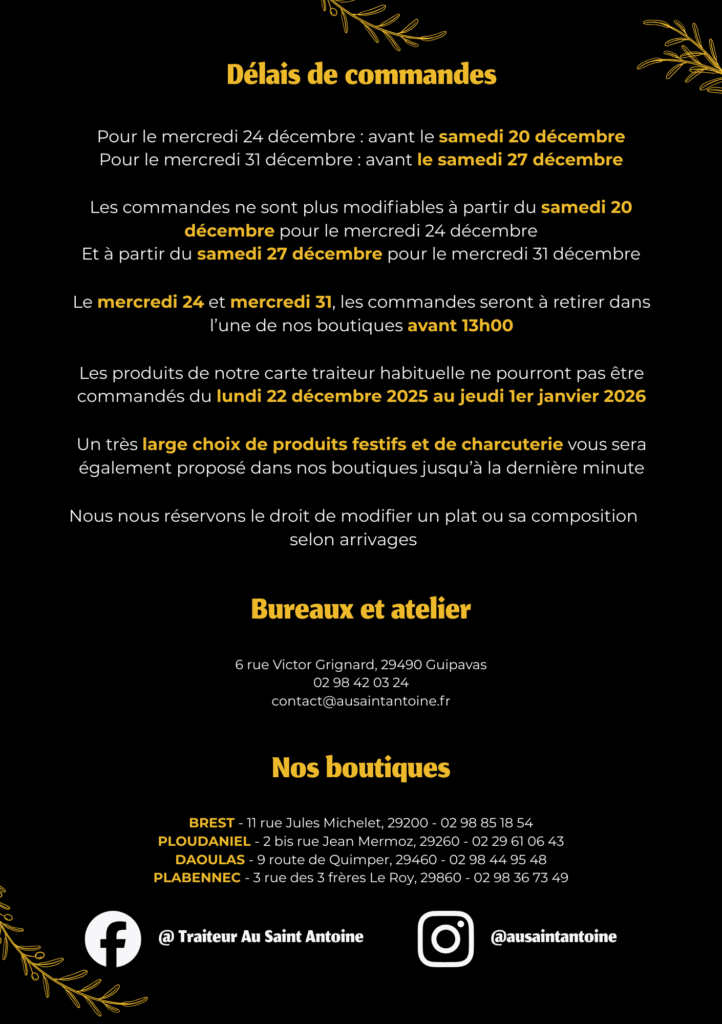 Nous vous proposons également des plateaux repas, retirables dans nos différentes boutiques ou en livraison dans la région brestoise.