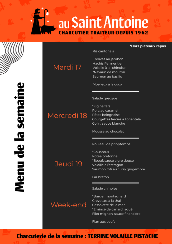 PLATS DE LA SEMAINE : du 17 février au 21 février