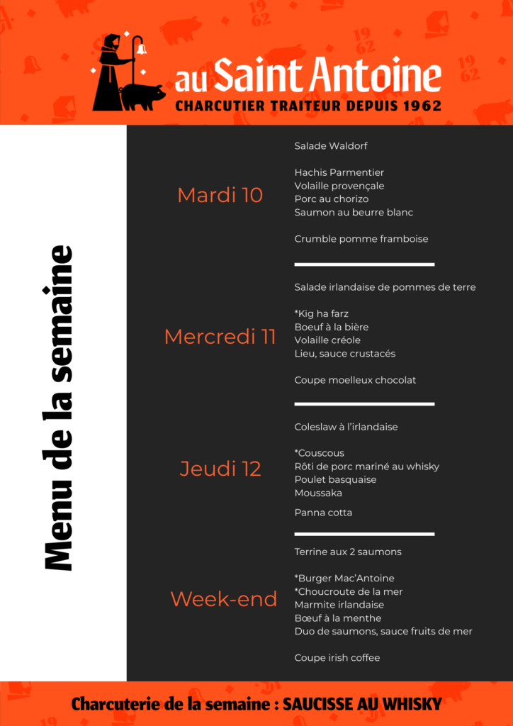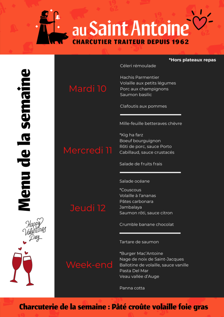 PLATS DE LA SEMAINE : du 10 au 14 février 2026